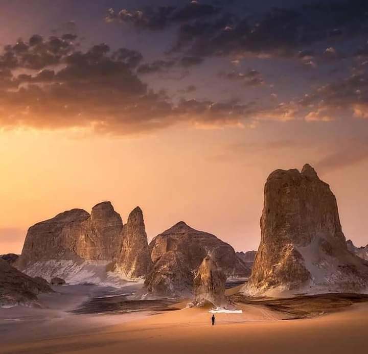 The Egyptian Western Desert, stretches like a sea of sand, concealing endless secrets and legends within. Its vastness astonishes you as you gaze into the boundless horizon. Its nature captivates you, its colors changing with the sun’s rays between gold, orange, and silver under the moonlight. Here, you feel as if you’ve escaped the hustle and bustle of the city to find yourself in the embrace of silence, a silence brimming with life, where you hear the whispers of the winds sculpting the dunes and leaving their traces in the sand. In the heart of this desert, green oases await you, like sparkling emeralds in the open air, surprising you with the shadows of their ancient palm trees and fresh waters that gush forth like a miracle in a land that knows nothing but drought. Between the oases, rocky mountains, white cliffs, and valleys, you experience an unforgettable adventure, where the magic of nature blends with the fragrance of history. Every rock tells a story, and every ancient road bears the traces of a caravan that passed centuries ago. A trip to the Western Desert is not just a visit to a place, but a spiritual experience that brings you back to yourself, makes you contemplate the greatness of the Creator, and gives you an indescribable feeling of freedom and liberation, as if you are discovering the land for the first time.